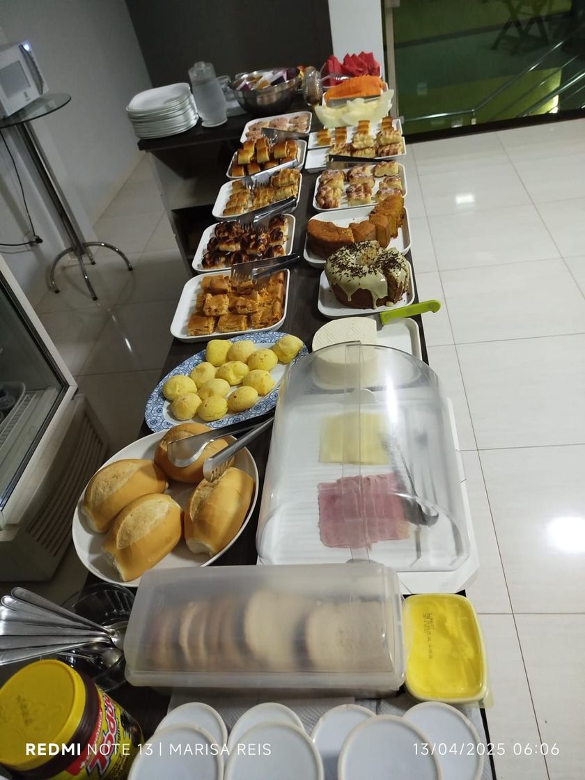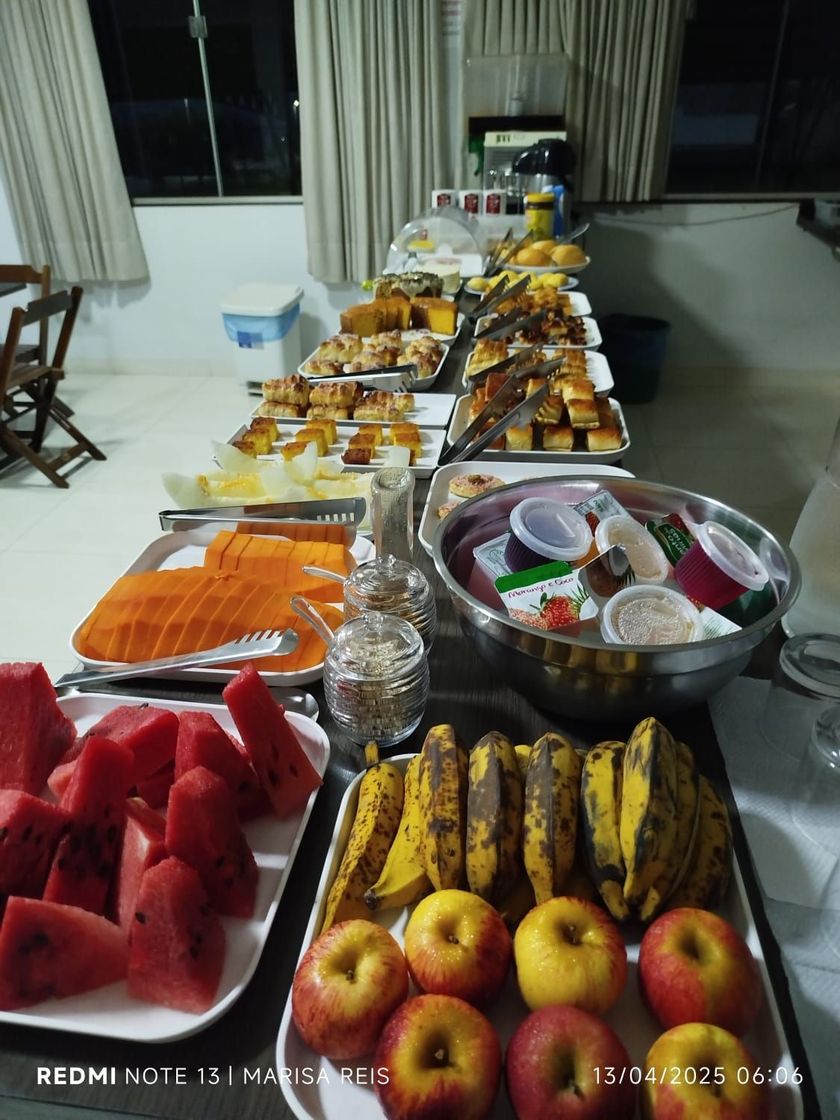 Comece o dia da melhor forma! Nosso café da manhã é preparado com carinho, trazendo uma variedade de pães, bolos, frutas frescas, sucos naturais e bebidas quentes. Um momento especial para você recarregar as energias e aproveitar cada detalhe da sua estadia.